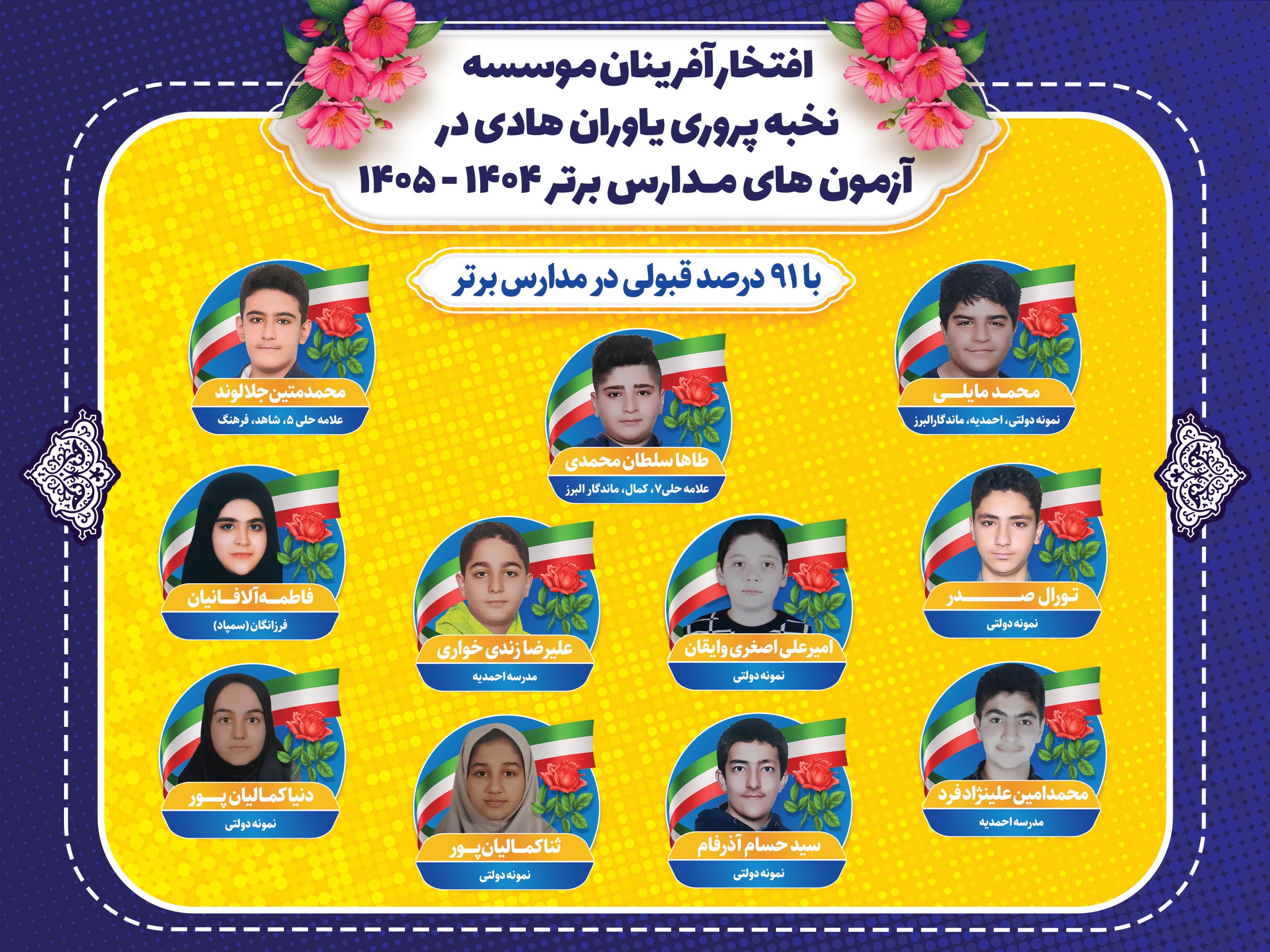 قبولی نخبگان یاوران هادی در مدارس برتر
